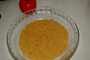|     | Method: (photos are of the almond / coconut wrap below which is a bit lighter in colour.  Method is the same) Mix the dry ingredients together Add the oil, water and egg. Mix well. Pour into a greased glass pie plate and spread evenly Microwave for about 2 ½ min. Time will vary depending on your microwave. Loosen the edges with a spatula and lift out Fill and serve |