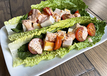 At home or travelling lettuce works well as a gluten free wrap for the same reasons. It is so simple, light and easy. Lettuce wraps work well with egg salad, tuna, or salmon, but be creative and see what works for you. Just pick a few nice broad leaves, spoon in the ingredients and roll it up. The soft, broad ends of romaine leaves work well or you can make lettuce "boats" out of the smaller leaves like in the photo. Live Boston lettuce it works great and won't split on you.