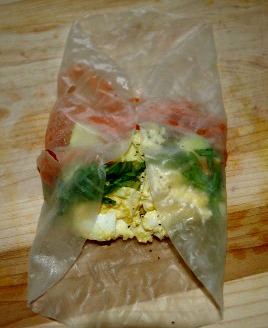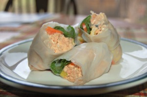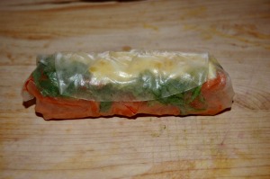 These are, not surprisingly, Asian in origin. You'll find them in any Asian market and now in most grocery stores. You can stick to the theme and fill them with julienne veggies, bean sprouts and a little peanut sauce or sesame oil, or you can make it your own and fill your rice paper wraps with whatever you like. You can also roll them nice and tight and deep fry them. Yum.