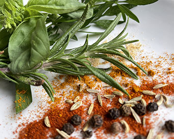 Italian dishes use olive oil with basil, oregano, sage, rosemary, and thyme.