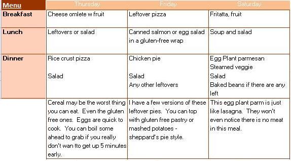 Lunch: Leftovers in a gluten-free wrap or microwave container |